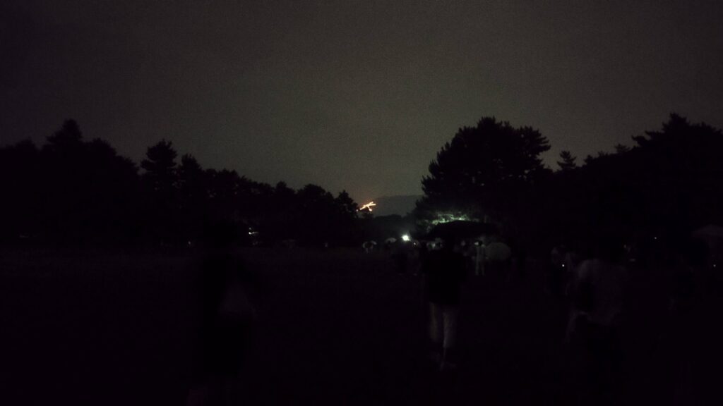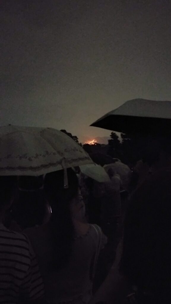 でも大文字点火の20時には傘なくてもいけるかなーくらいのポツポツ降りに弱まっていました